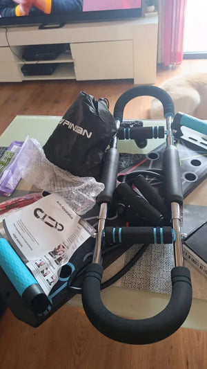 Está hecho de acero duradero con un diseño de resorte doble, asegurando estabilidad y resistencia durante tus ejercicios.